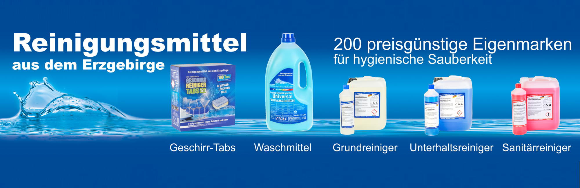 Die Produktpalette erweiterte sich stetig - derzeit auf über 20.000 Artikel - und erstreckt sich von Hygienepapieren, Reinigungsmittel für Küchen, Bäder, WCs- und Waschräume über Waschmittel, Reinigungsgeräte, Reinigungsmaschinen und Reinigungszubehör, Dosiertechnik bis hin zu Desinfektion, Arbeitsschutz und Einwegverpackungen.